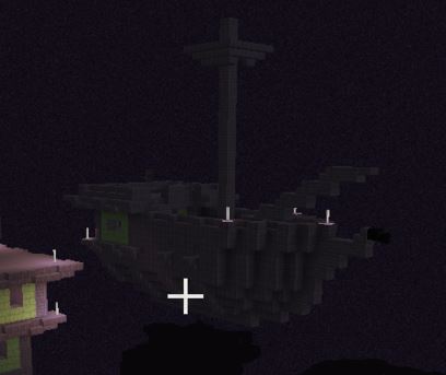 3、击败末影龙后,会在一边的天上看到去末地船的传送方块。我们上去后扔一个末影珍珠即可进入: