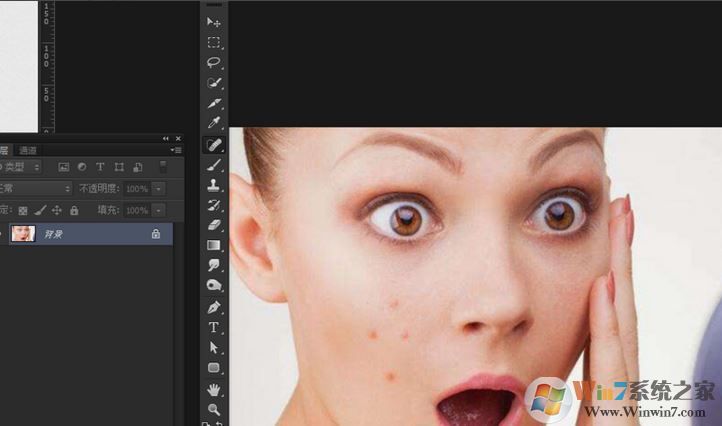 1、首先我们打开PS,然后在ps中打开需要进行修补的图片,如,小编在这里打开一张美女图片;