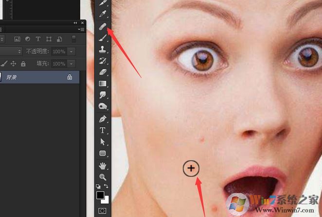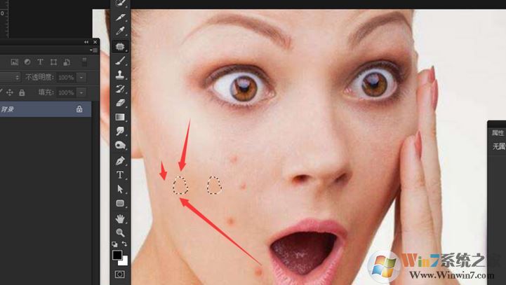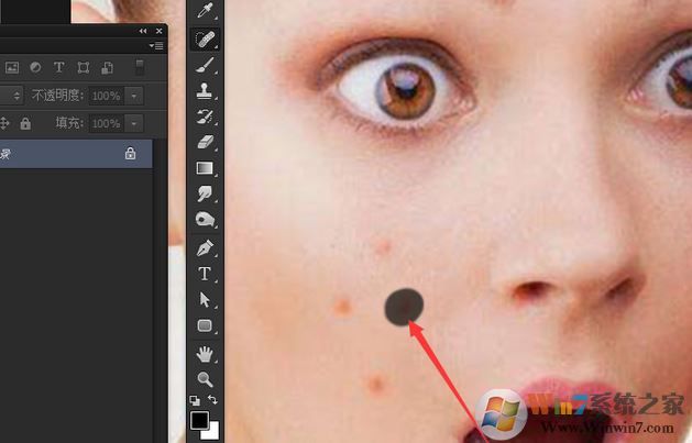 6、按住alt键,点击后,再去有污点(痘痘)的地方点击,就可以看到效果了!