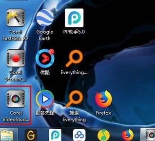 1、单击左键会声会影图标,打开会声会影;