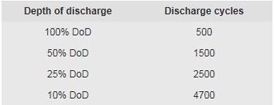 1)电池在使用过程中,尽量减少充、放电深度。如下所示的实验数据表明,在其他条件不变的情况下,电池的放电深度(Discharge of Depth,DoD) 越低,电池能够实现的充电次数就越多。