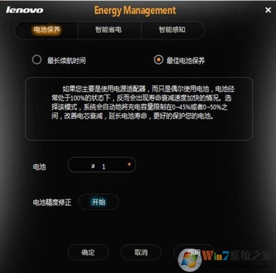 预装新版本联想电源管理软件(如 Energy Management 6.0),已经可以帮助电脑用户实现上述电池电量的控制。如下图所示: