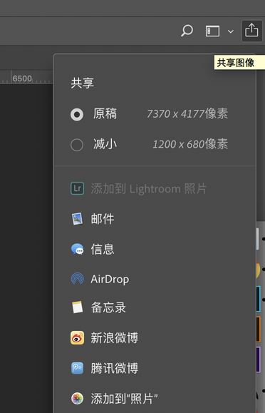 通过电子邮件、文本、社交网络等方式共享您作品的拼合副本。此功能会使用原生操作系统共享机制,包括已经过身份验证的服务。