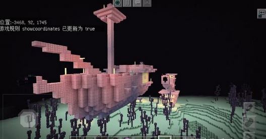 像这种末地船和末地城在一起的,如果没点耐心,估计你是找不到了。所以放个种子和坐标,助你一臂之力。末地船种子:-2028161610,位置坐标:-3468,92,1745。