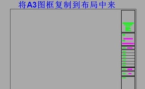 2、将我们已经绘制好的标准图框拖到布局里面(此处我用A3图框为例,图幅尺寸为420mm×297mm)。