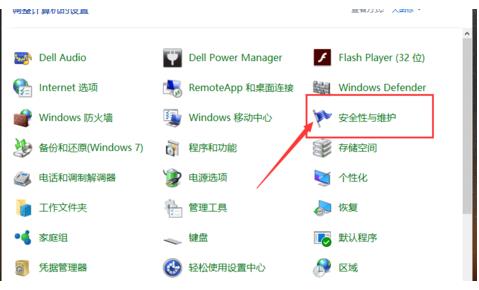 1、任务栏搜索框,搜索控制面板,然后打开,小图标查看,点击安全性与维护;