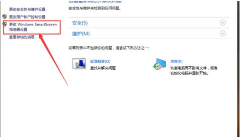 2、接下来点击更改Windows SmartScreen筛选器设置;