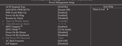 1、先进入Win10系统BIOS设置界面,然后在BIOS设置面板上选择““Power Management Setup”页面,找到S3 KB Wake-Up Function项,将它设置为Disable。(不同品牌主板略有不同,但设置名称相似:)