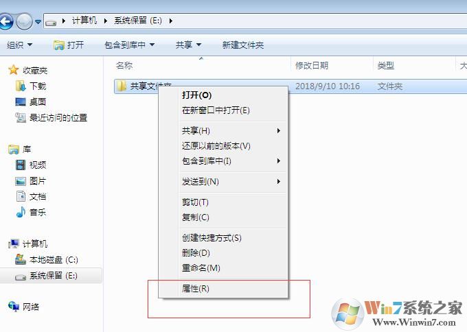 1、在Win7系统下右键点击要共享文件夹,右键属性;