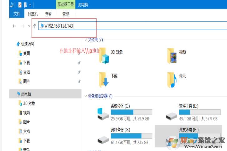 我们可以看到本机ip地址是192.168.128.143,那我们就再地址栏输入\\192.168.128.143,回车。