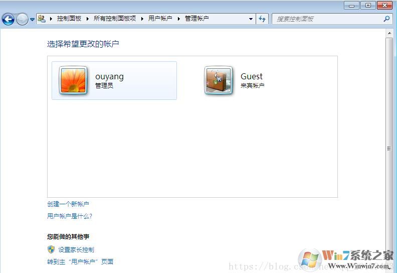 点击开始->控制面板->用户账户->管理其他账户,将来宾账户启用
