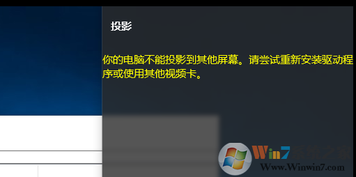 出现这样的情况,多半是由于显卡驱动和Win10不兼容所导致投影功能无法使用,而解决这个问题的方法只能是更新你的显卡驱动或者重新安装显卡
