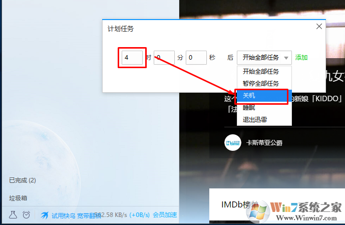 1、打开迅雷点击左下角下载计划--选择计划任务。