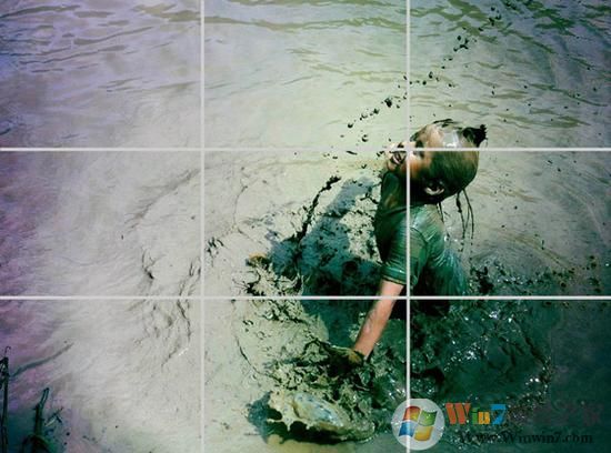 摄影构图遵循的法则是三等分法,摄影师需要将场景用两条竖线和两条横线分割,就如同是书写中文的“井”字。这样就可以得到4个交叉点,然后再将需要表现的重点放置在4个交叉点中的一个即可。