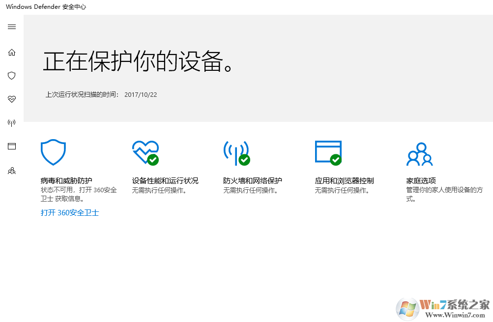 - 依次选择“开始” 按钮 >“设置” >“更新和安全” >“Windows Defender”>“打开 Windows Defender 安全中心”。