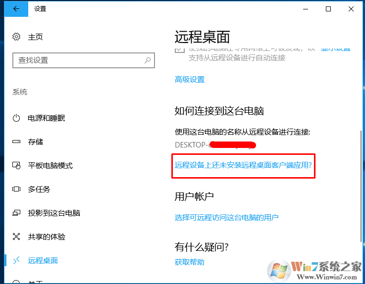 4、然后点击远程桌面设备上还未安装远程桌面客户端?查看自己的远程设备需要安装什么软件。