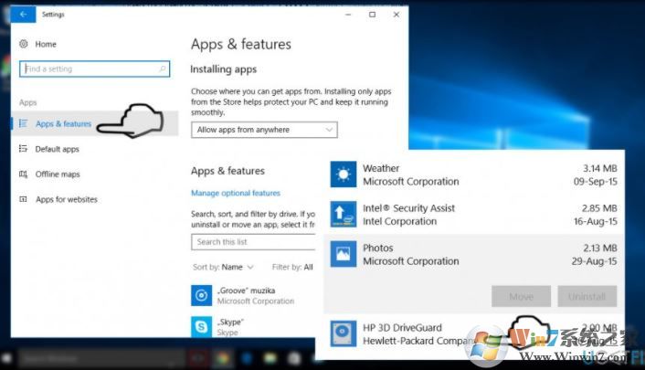- 选择应用程序,然后单击左窗格中的应用程序和功能选项。