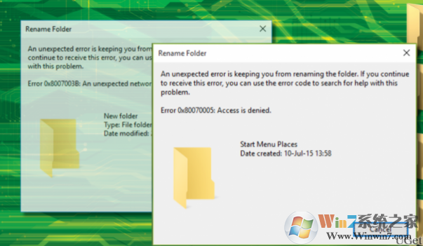 意外的错误是阻止您重命名该文件夹。如果您继续收到此错误,则可以使用错误代码搜索有关此问题的帮助。