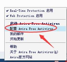 步骤1、、打开右下角小红伞托盘,配置Avira Free Antivirus 如图: