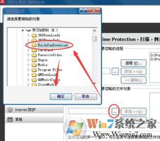 步骤6、设置排除列外文件夹。如果需要设置排除例外文件夹白名单,可以点击 .... 浏览到需要添加的目录,如图: