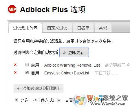 5、安装完成后,在浏览器的工具条上就会出现刚添加的Adblock 按钮,点击在“选项”中可以进行广告拦截的相关设置,当然不设置也行,因为安装后默认开启拦截广告功能哦