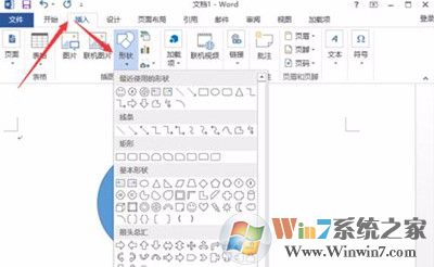 2、然后在word文档中点击菜单栏的“插入”选项选择图形,将选择的图形插入到文档中。