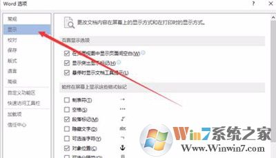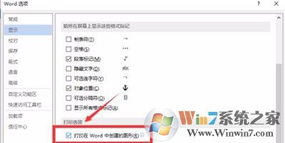 7、此时我们应该在对话窗口中切换到“显示”选项卡栏,具体操作如下图所示: 在显示中我们找到打印选项区域下的“打印在 Word 中创建的图形”选项并将其勾选“√”,再确定保存下来就可以了,具体操作如下图所示: