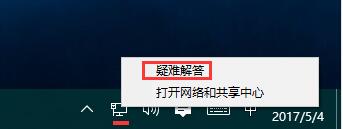 1、右击任务栏的网络图标,点击"疑难解答";