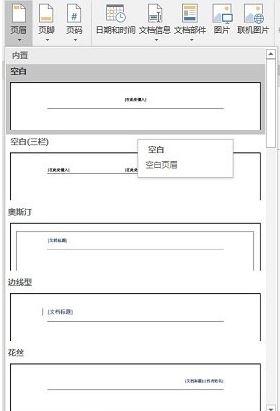 3、点击页眉后此时会弹出一个菜单,我们在下拉菜单中选一种个人喜欢的样式即可;