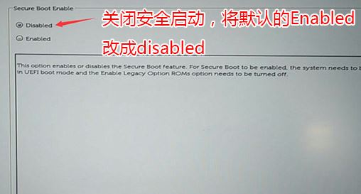 1、开机一直按F2进入BIOS,按F2进入BIOS界面,切换到secure BOOT页面,选择secure Boot Enable按回车改成Disabled,如图: