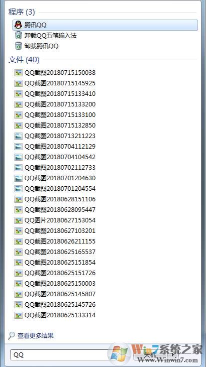 2、输入QQ试一下,分别把程序和和QQ有关的文件列出来了。
