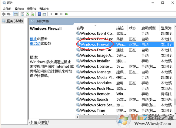 2、在服务里面找到Windows Firewall,双击,在启动类型中选择“禁止”。