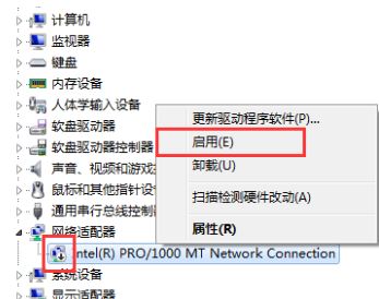 win7旗舰版网卡被禁用恢复方法:设备管理器