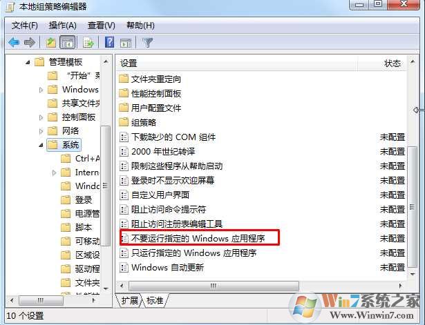 2、选择“用户配置-管理模板-系统”,双击右侧的“不要运行指定的windows应用程序”