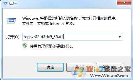 二、然后打开“开始-运行-输入regsvr32 d3dx9_40.dll”,回车即可解决错误提示。