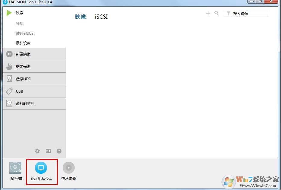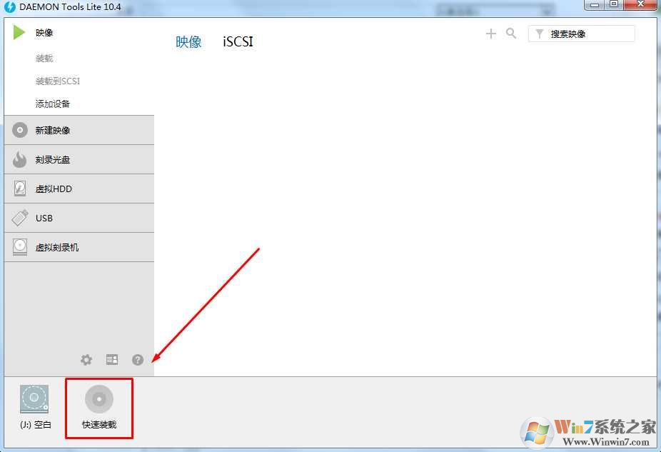 2、点击映像,然后点快速装载,如下图:(当然也可以从右上角先添加备用的镜像);