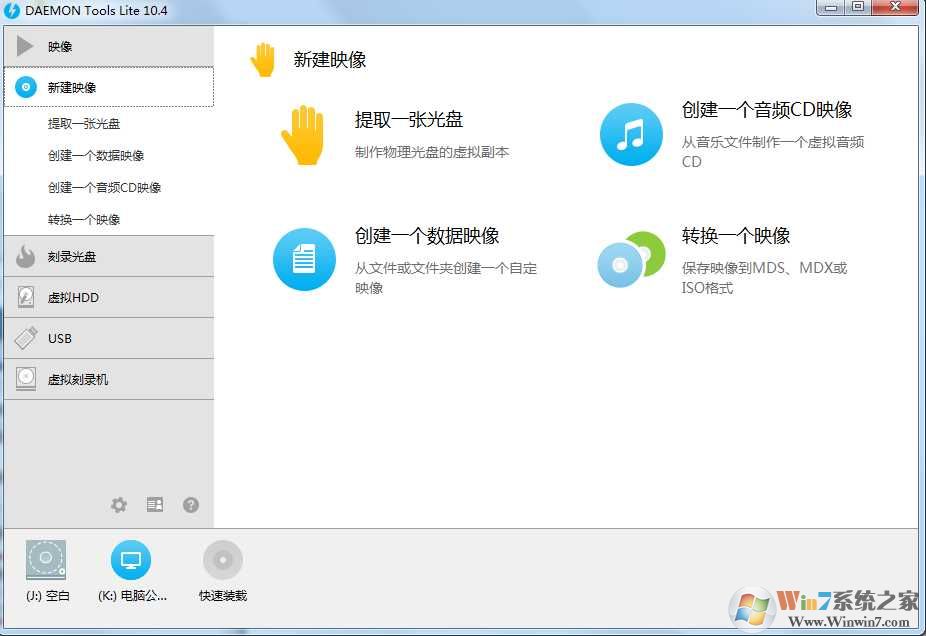 5、同时daemon tools lite还有更多的功能,如提取光盘镜像 创建CD镜像、刻录镜像、虚拟HHD、虚拟刻录机等