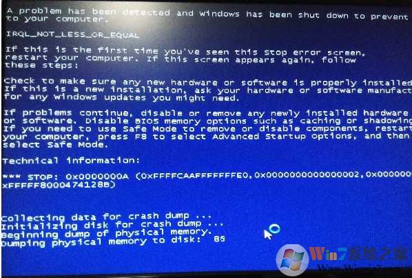 蓝屏代码0x0000000a属于系统底层核心文件加载失败,此类问题一般是由于硬件原因导致