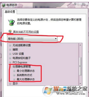 5.选择高性能→选择子选项拓展开来可以进行详细的设置。