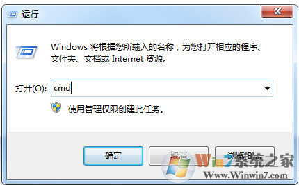 1、开始→运行→输入cmd→回车。