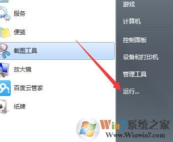 1、点击开始菜单,点击【运行】选项,点击打开,如图所示: