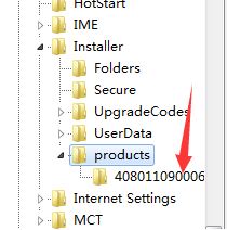 3、最后展开products项找到其下的【4080110900063D11C8EF10054038389C】项目,将其删除,关闭注册表。
