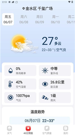2、一次便捷去查看40日天气变化,任何时候的天气变化尽在掌握。