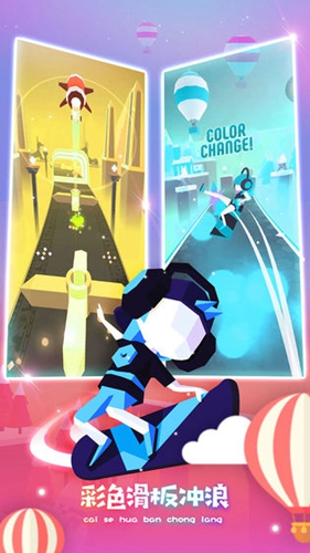 3、奇妙梦幻的主题设置:滑板色彩冲浪不仅提供了多种主题场景供玩家探索,每个场景都有独特的色彩搭配和背景音乐,让每一次滑行都成为一场视觉与听觉的双重享受。