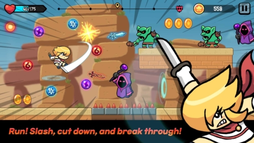 跑切跑是一款横版动作的冒险跑酷游戏,其画风十分的独特,大家将去灵活的操控角色不断的向前奔跑,并且灵活的进行移动与跳跃等去躲避各种危险的障碍物,收集更多丰富的金币武器与道具等,释放出强大炫酷的技能招式去对抗危险的boss与怪物们,玩起来十分的趣味精彩,体验感十足,还有着各种不同的地图与关卡可以选择开启挑战,感兴趣的朋友们千万不要错过哦,快来本站下载体验一下游戏吧!