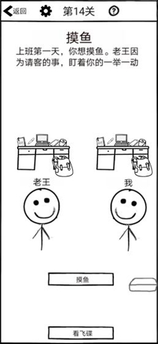 2、作为一家公司的员工,玩家的任务就是趁着老板不注意偷偷摸鱼,如果玩家被老板发现的话就意味玩家闯关失败。