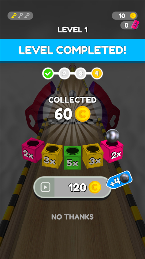 3、碰到障碍玩家需要灵活躲避,同时还需要收集路途的钥匙和金币;