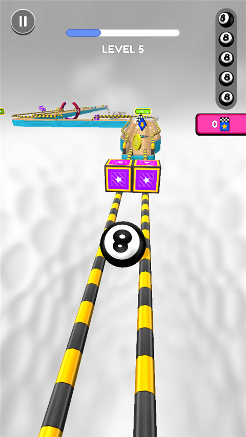7、越到后面关卡越难,玩家需要灵活的控制球体运行在跑道上哦。