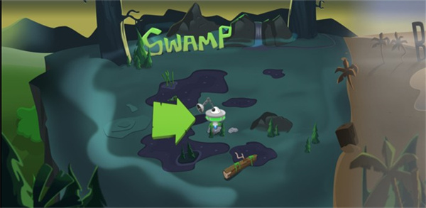 1、主角会与机器人小伙伴驾驶着一艘飞碟到一片沼泽中寻找外星人的踪迹;