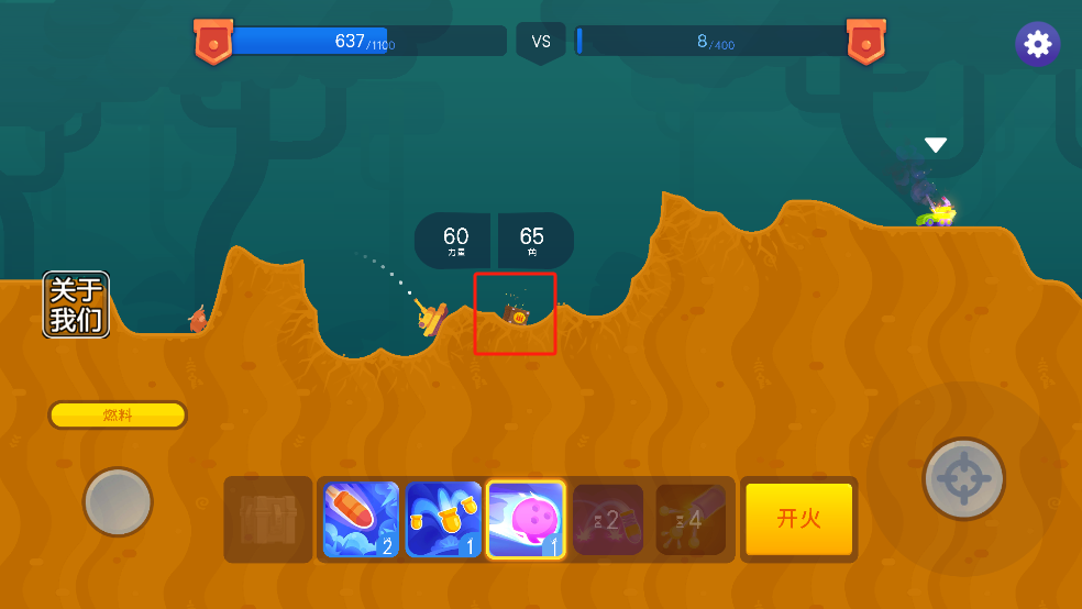 3、游戏中还有不同的炮弹可以选择,在子弹数量消耗完之前击败对手